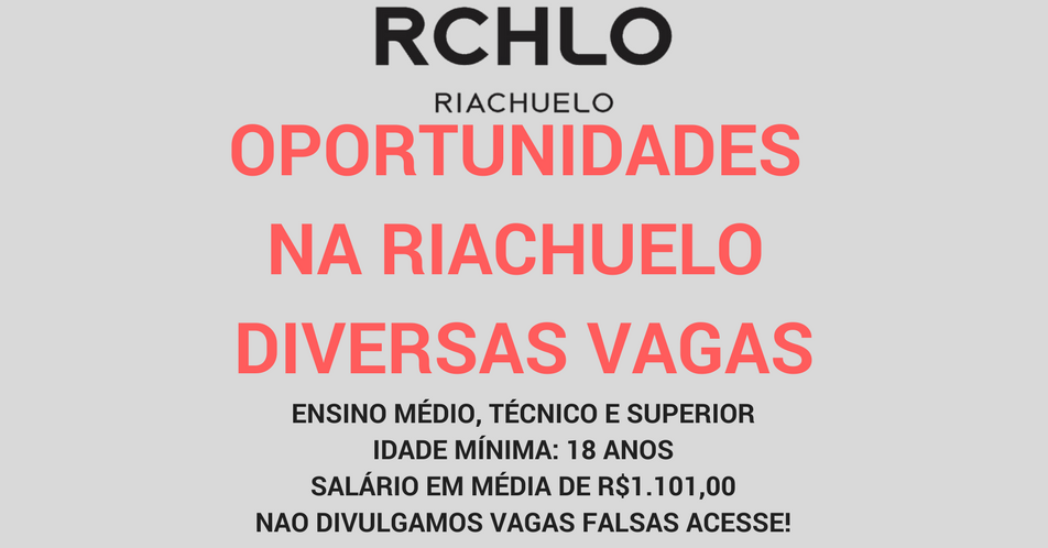Interessados acesse o site oficial da empresa Riachule https://www.vagas.com.br/riachuelo, lembrando que nao divulgamos oportunidades falsas.. voce mesmo podera acessar o site da empresa e verificar as oportunidades. Compartilhe a vaga para quem precisa. Boa sorte.